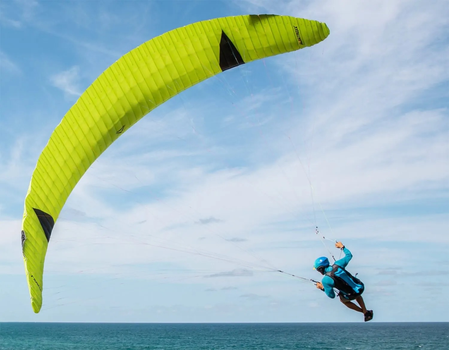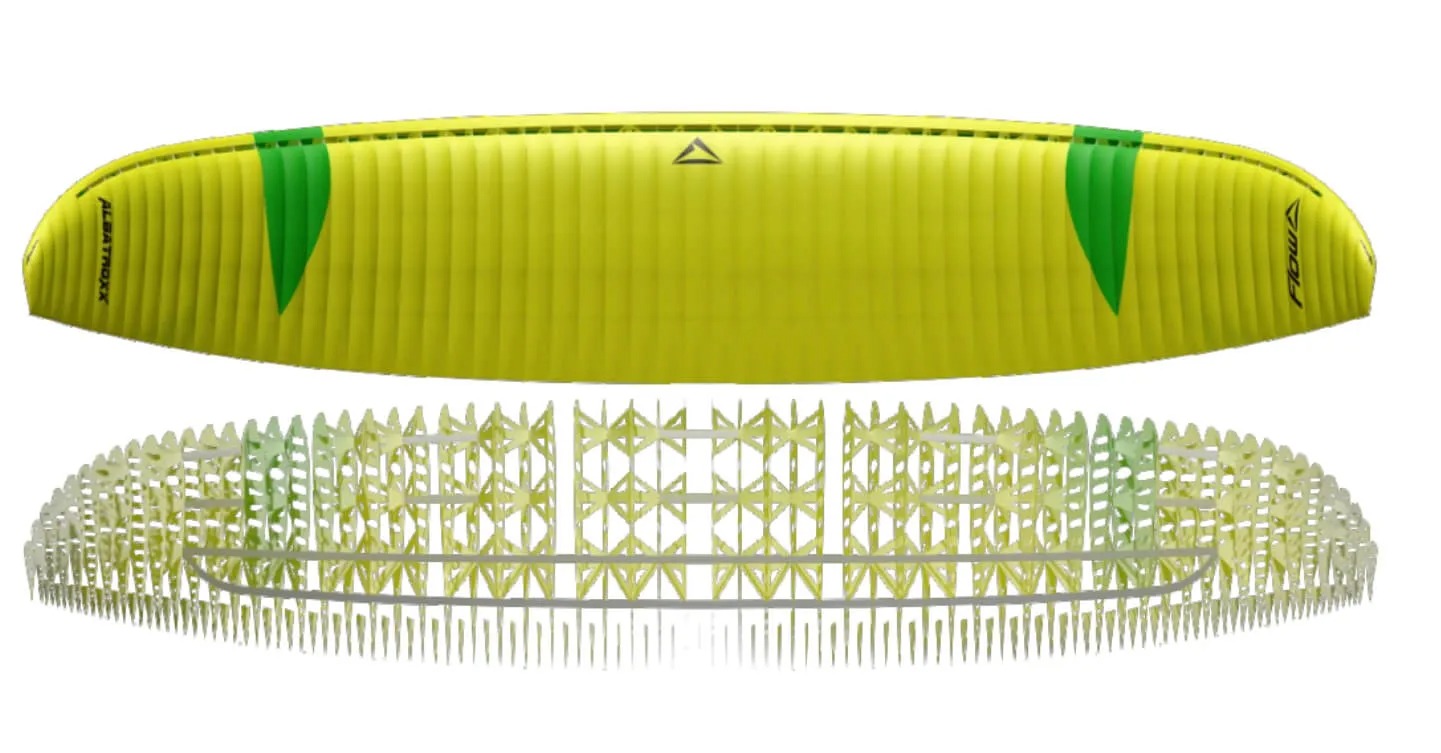 アスペクト比を高くし、セル数も68セルと増やしたこのグライダーは、より高速で、より深くダイブし、優れた効率性と素晴らしいフレアーを実現しています。経験豊富なパラカイトパイロット向けに設計されたアルバトロックスは、アスペクト比が高いため、フローのラインナップの他のどのパラカイトとも異なる精度の高い操作性とエネルギー変換を実現しています。また、フローのパラグライダーの中で(揚力発生が)最も効率的であり、マレットやマレットXと比較してより小さな翼面積で飛ぶことができます。