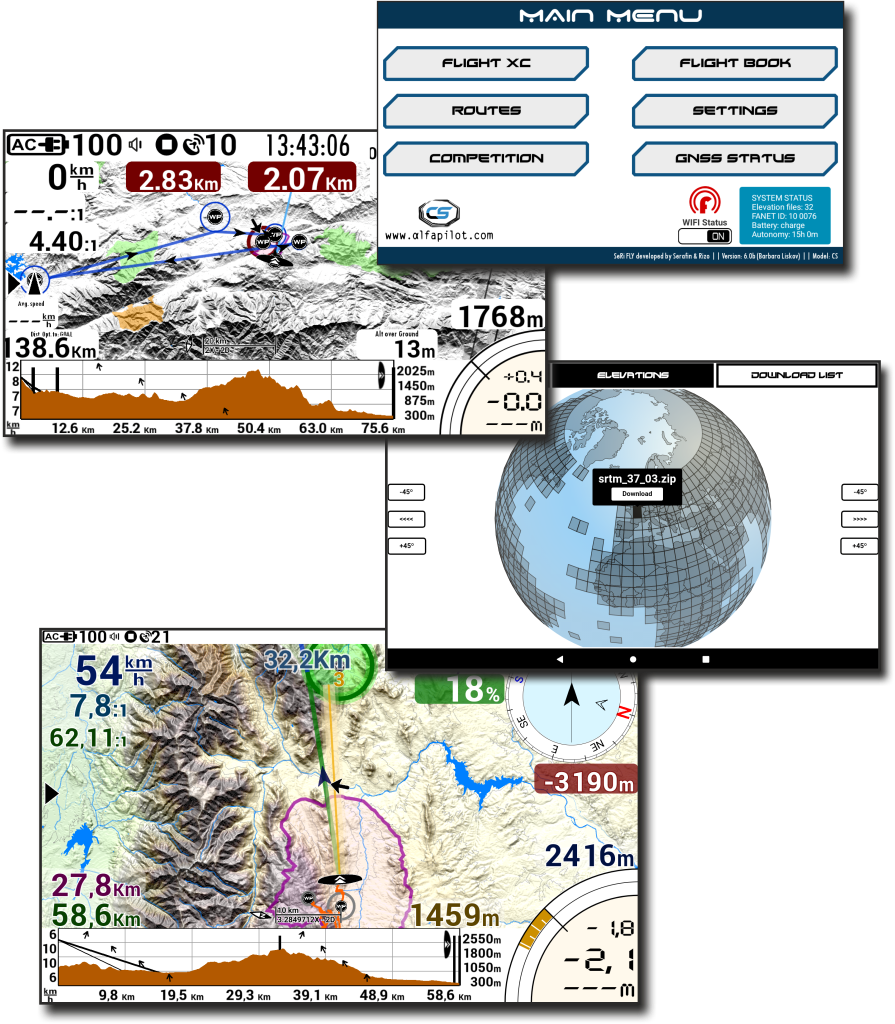 セリフライ(SeRi FLY)カラー版には、複数のフライトモードとアシスタントを備え、適切なタイミングで正確な情報を表示する高度なアルゴリズムを搭載したアルファパイロットの高度なナビゲーションアプリケーションが組み込まれています。