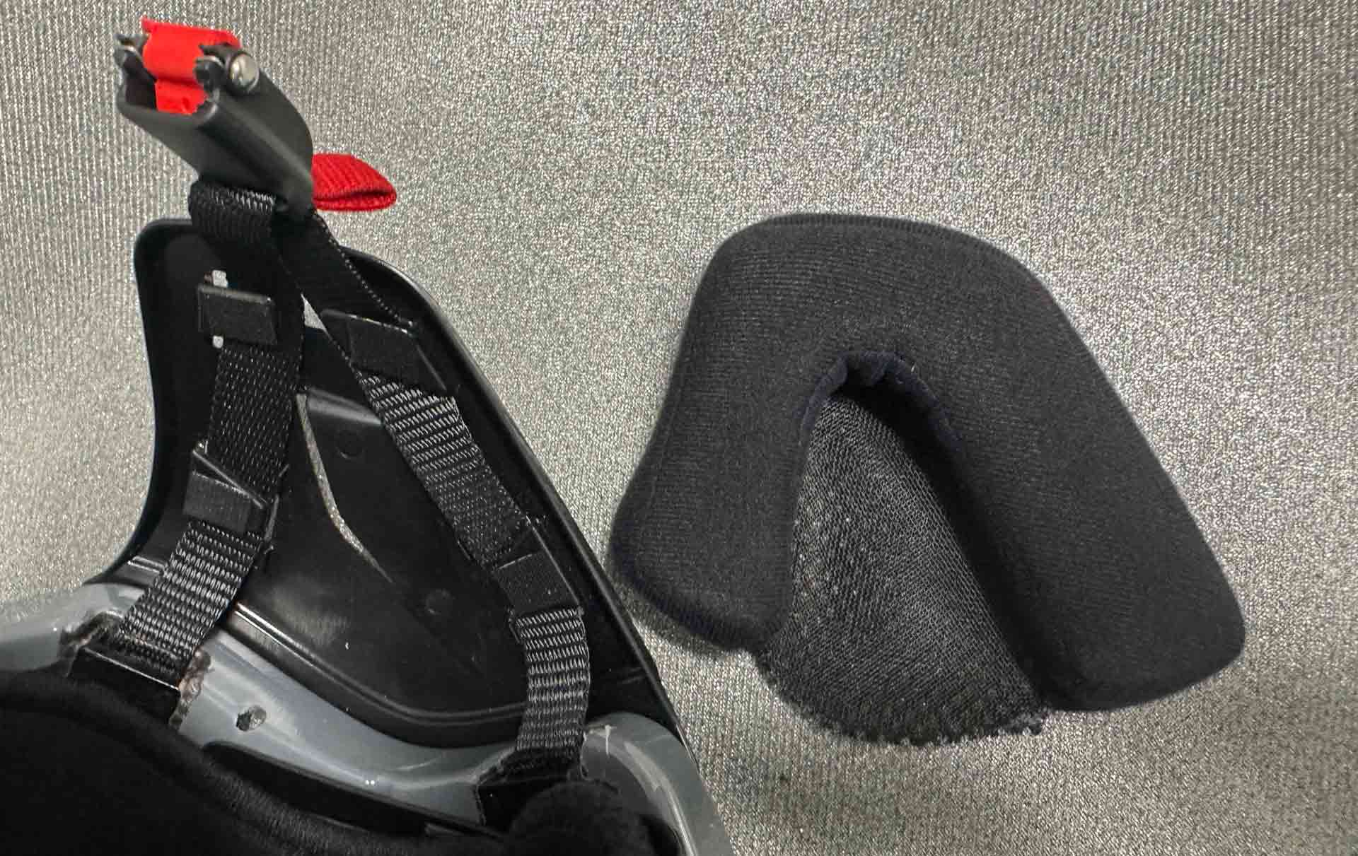 バイザーにフォームストリップ(鼻パッド)を装着可能。バイザーと顔の間に空気が入らないようにする特別な機能です。ウインターシーズンのフライトではバイザーの曇り止めになります。