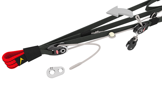 テイクオフの準備をイージーで確実にするため、フックインループとブレークハンドルは色分け(右:グリーン、左:レッド)しています。これにより、ライザーがハーネスに正しく装着されているかどうかが一目でわかります。